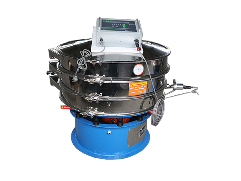 超声波振动筛是旋振筛的一种衍生产品,将超声波控制器与振动筛有机结合在一起,在多年的研究生产的旋振筛的基础上,在筛网上面叠加一个高频率低振幅的超声振动波,超微细粉体接受巨大的超声加速度,使筛面上的物料始终保持悬浮状态,从而抑制粘附、摩擦、平降、楔入等堵网因素,从而解决了强吸附性、易团聚、高静电、高精细、高密度、轻比重等筛分难题,使超微细粉筛分不再成为难事,特别适合高品质、精细粉体的用户使用。